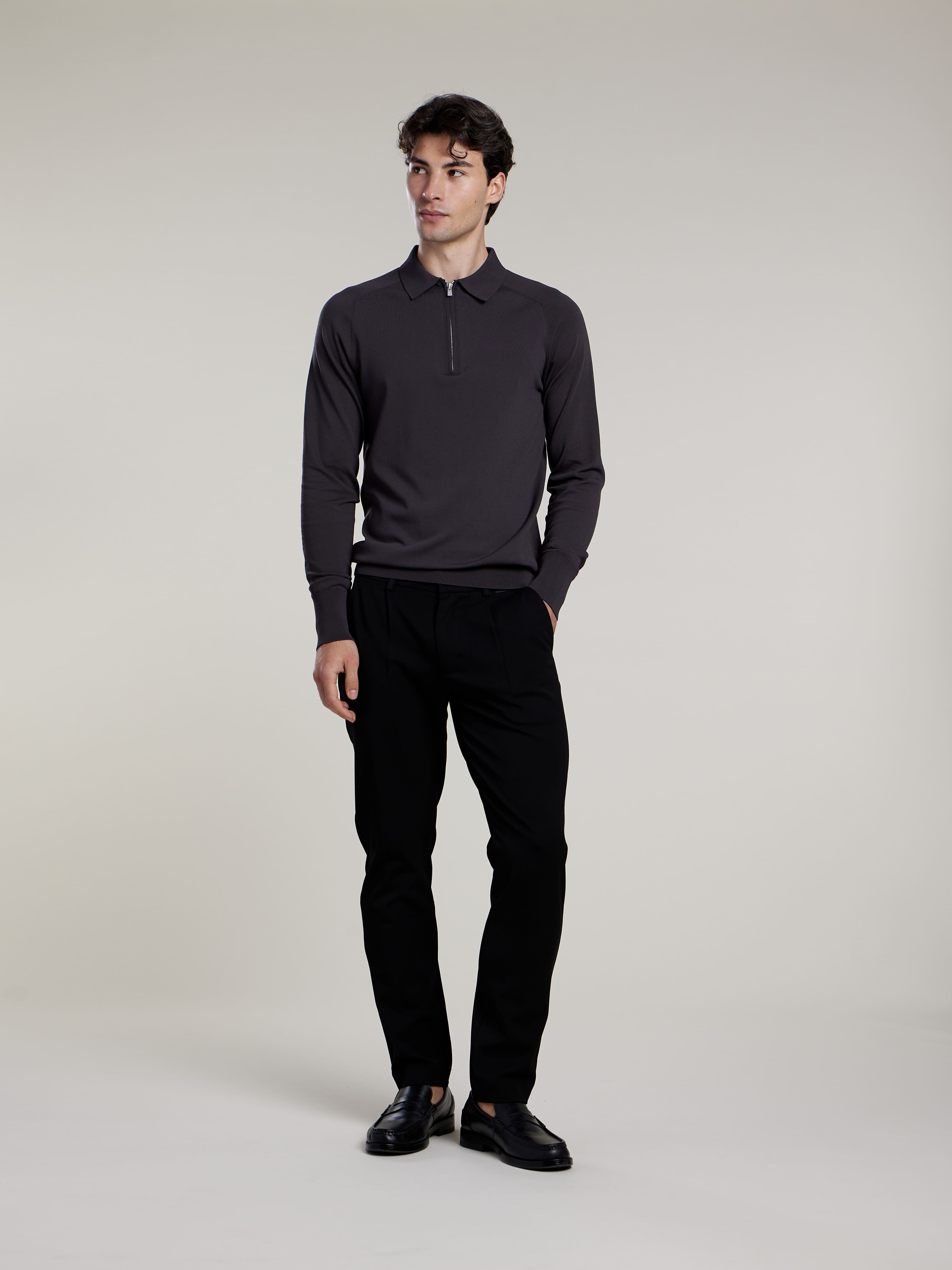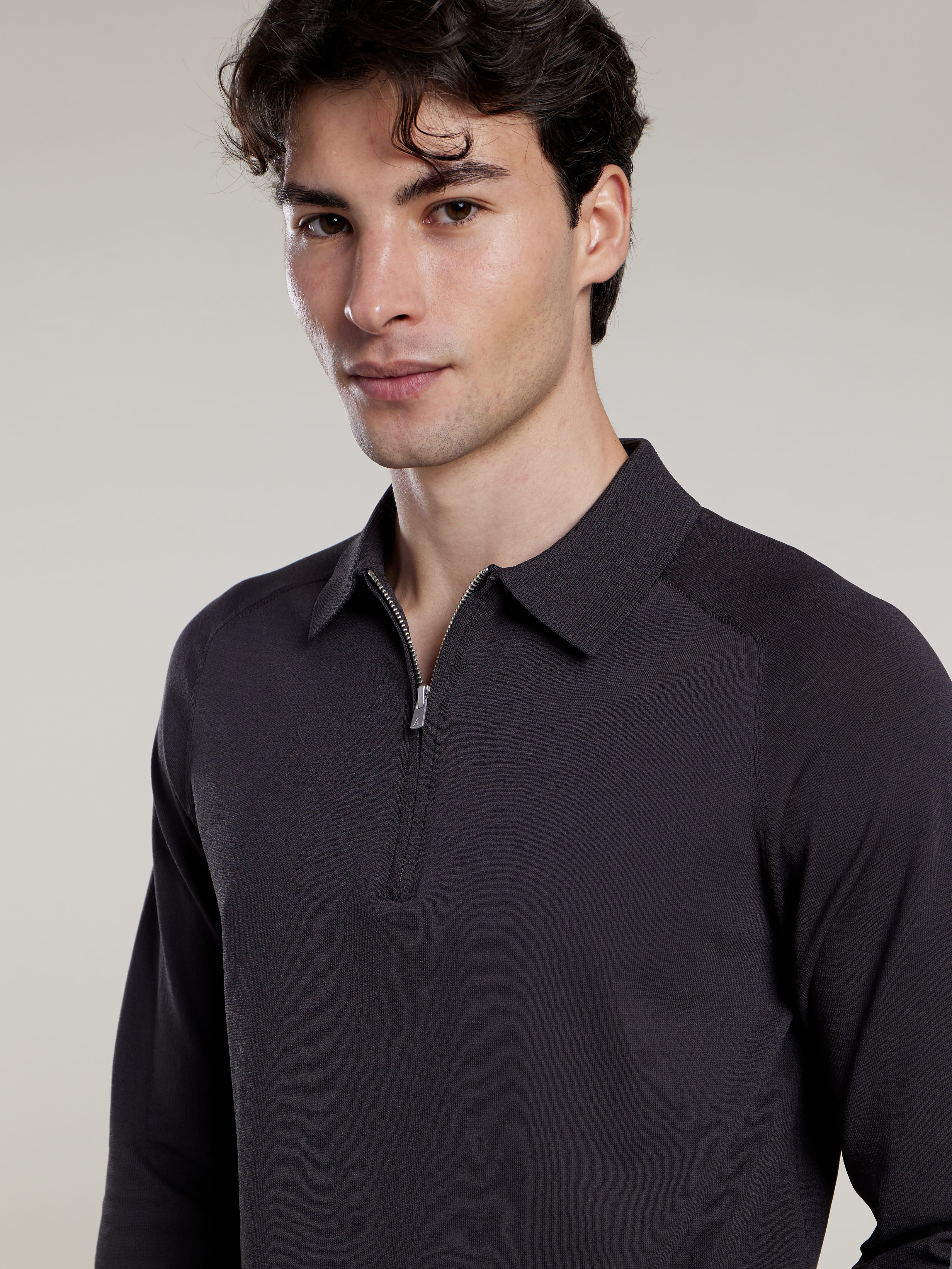 The BENNO long-sleeve polo combines a sleek flatknit design with a modern zip-up collar. Its slim fit ensures a comfortable and tailored feel, making it a flexible addition to your wardrobe.