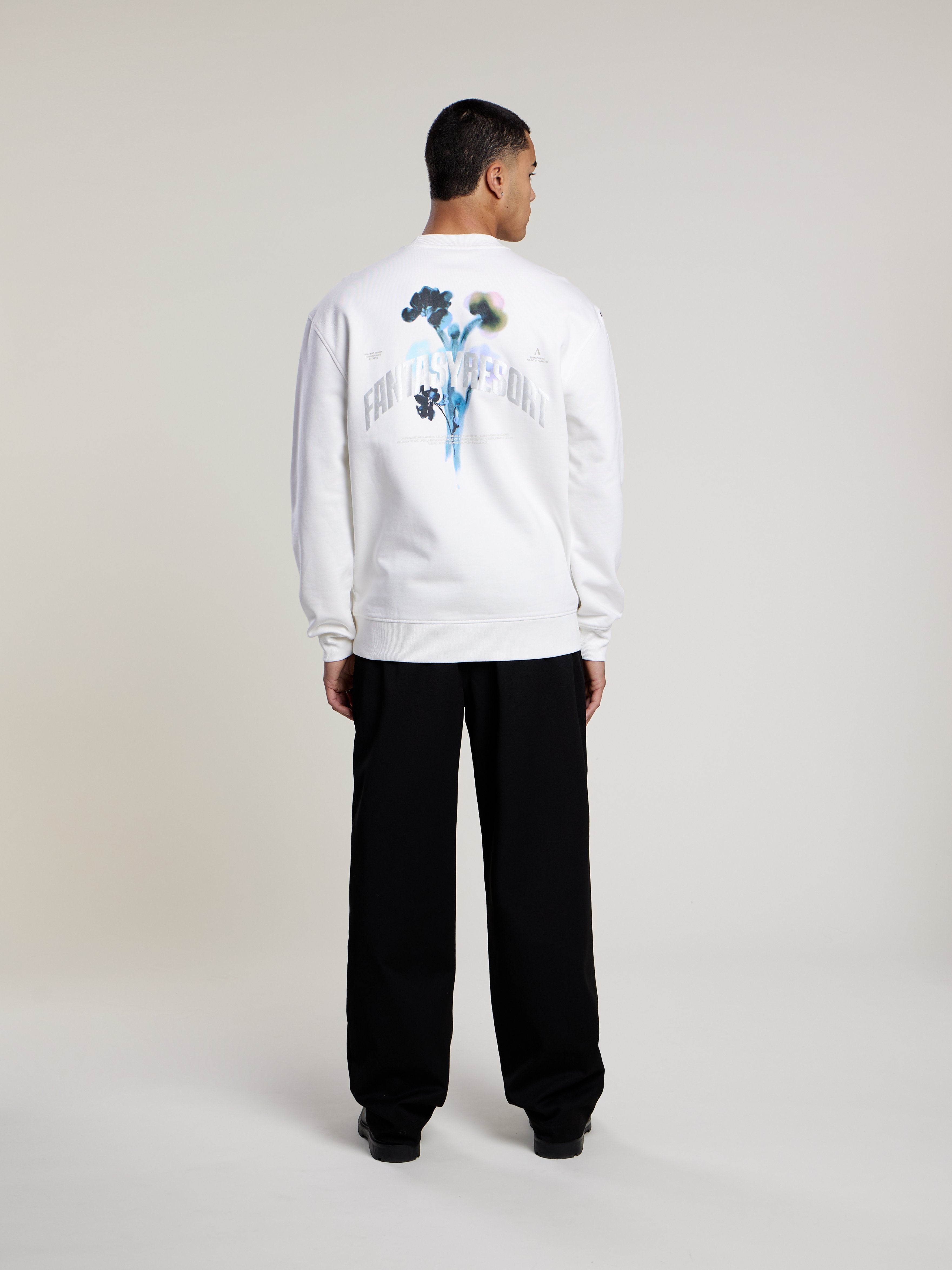 Finished with a large back print combining satin print, HD print and pigment print, creating depth and contrast.