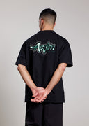The Worrel Tee is made from 100% organic cotton. Oversized T-shirt with a solid structure. Features a mix of puff print, pigment print, and thick embroidery lines in the artwork. Clean base with strong graphic detailing.